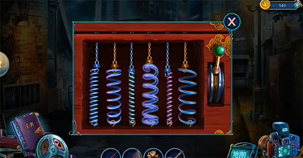 中偏右卷帘门子场景使用【蛇形钩】【操纵杆】《猜谜寻物,相片+信箱=左的信件中下,手套+链条=左的手铐左下,小鸟+月亮=左的猫头鹰中上,手枪+子弹=左的手枪中间,绳子+捕兽夹=中的鞭子右中,钓鱼竿+鱼=中的鱼钩中下,太阳+树枝=中的徽章左上,双眼+放大镜=中的望远镜中下,针线+花=右的玫瑰右中,麦穗+圆帽=右的草帽左下,嘴唇+刷子=右的口红中下偏左,戒指+耳朵=右的耳环右下》得到【火焰喷射器】