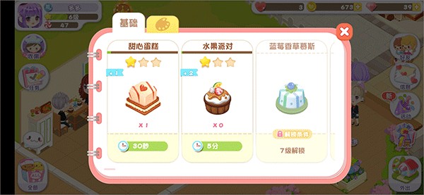 1、蛋糕物语让玩家不断拓展蛋糕店经营范围,提升收益。