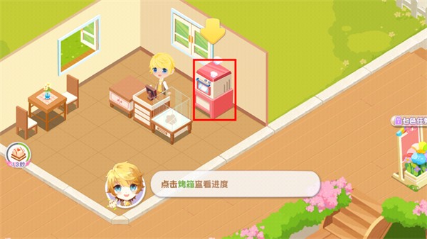 1、进入游戏,玩家先点击烤箱的泡泡进行蛋糕的制作
