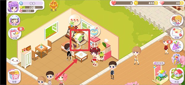 10、地图中有各种场景都有不同的玩法,例如服装店可以购买各种好看的服装、家具店中可以为小店购买各种装饰品、农场可以种植制作蛋糕的材料等等,还有很多场景会随着你的等级慢慢开放