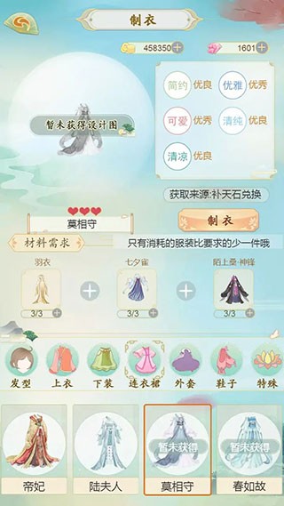 制衣消耗的原材料均为相对低级的服装,当所需的材料满足时,点击制作,制作出新的服装时,材料服装还会保留一件的。对于定制服装我们也需要材料齐全,如果材料缺失可以通过钻石、金币进行购买,还有些材料是需要完成任务才能获得。