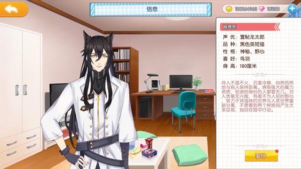 2、在每个店员的小黑屋里,店长不仅可以为他们换装换房,更能和猫美男们探讨人生闲扯家常。游戏中珍贵度在R以上的店员们都有自己的“专属事件”,通过提升店员等级就可以解锁该店员的专属事件啦~
