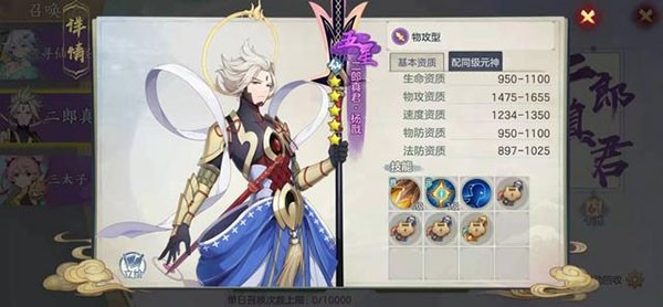 杨戬是一个游戏前期就能召唤的五星伙伴,也是前期最值得抽的伙伴之一。强大的物理单体输出技能【神征千戟】可以造成6段物理伤害,若过程中击倒了目标还可以将攻击转向另一个敌军并额外追加攻击段数,在收割战场时极其霸道。虽然后期相对疲软,但是依然是前期组建阵容的首选。