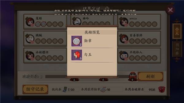 4)结界突破,这需要和玩家或者其他阴阳寮玩家对战,获得经验以及勋章、勾玉等,也可以获得比较多的经验。