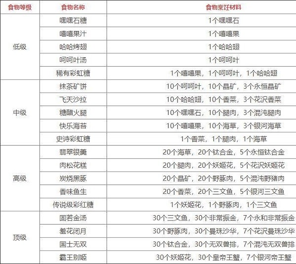 大家在烹饪的时候点击对应的食物或烹饪材料都能看到具体的说明。