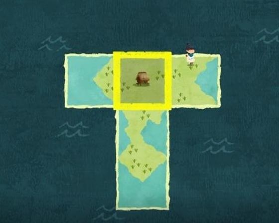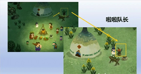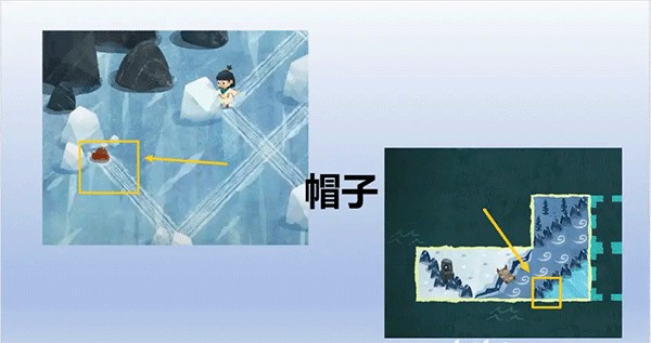 完成教学内容后,卡朵能够在一个渔夫边上捡到闪着白光的碎片,将其与现有地图拼接,形成新的地图,卡朵就能看到房屋出现在身边。