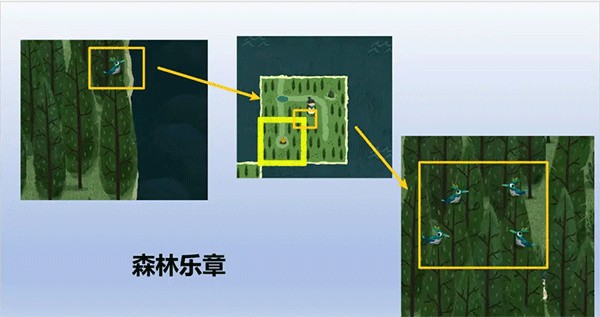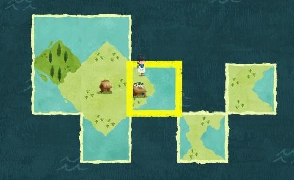 树林中同样有一个白色碎片,将其拼入后会出现一个新的NPC“阿伯”。阿伯找不到回家的路,卡朵需要将阿伯所在的版块拼到此前房子的东边。