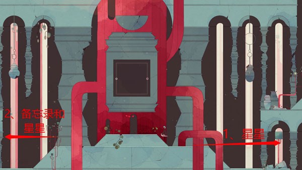 9、小石头离开后继续前进,来到中央平台。先去右边拿第一个“星星”。