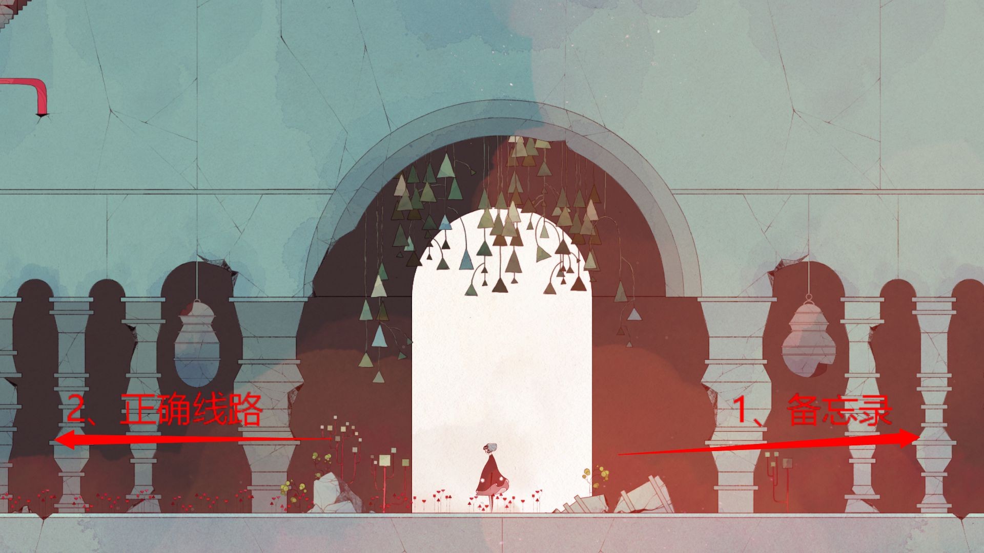 3、触发小石头的动画后一直前进,来到此处,右上方有第一个“备忘录”。