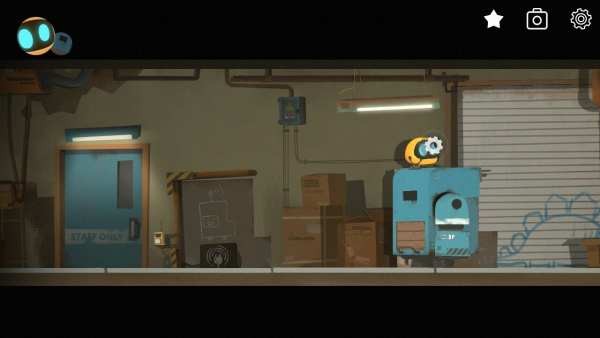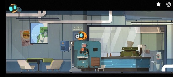 2、到了新场景继续往右,遇到绿色机器人得知机器人想吃易拉罐,旁边的邮箱里有封信,可以走进旁边的餐厅,进入里屋在抽屉里找到眼睛,出去给机器人装上,顺便捡走右下角的易拉罐,出门后右拐,绿色机器人会跟着Abi,进船舱,左下角有把钥匙,让Abi把易拉罐丢进去,绿色机器人会把易拉罐和钥匙吸出来,捡起钥匙上楼后往左走。