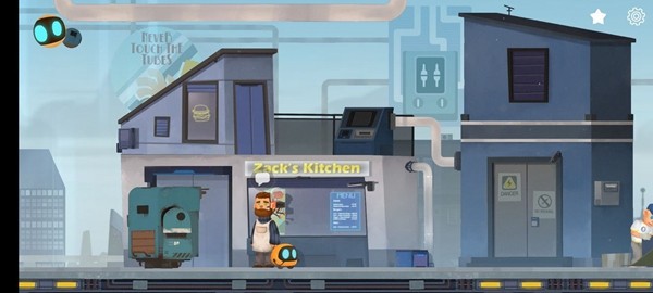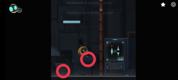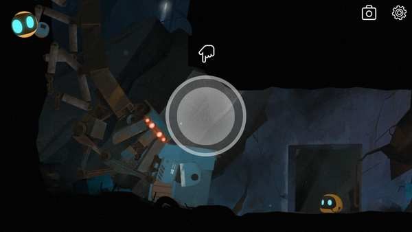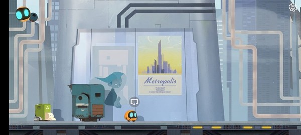 1、首先进入游戏往右走,发现一个被管道压住的机器人,Abi搬不动,于是叫来迪迪,点击左上角切换操作迪迪把管道弄走,救出机器人,完了往右走。