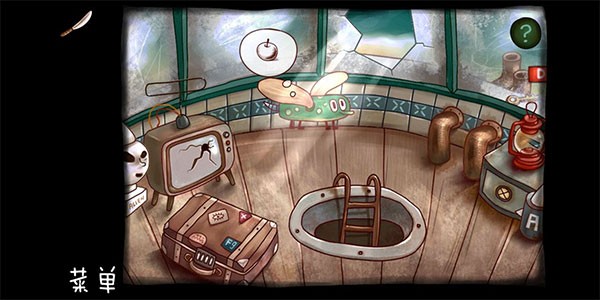 去右边的场景把左下角的电路解开。从这个场景得到水壶,拿着水壶去楼下的鱼缸里打水,再回到这个场景给这个植物浇水,得到苹果给小飞虫吃,得到钥匙把机器人解锁。
