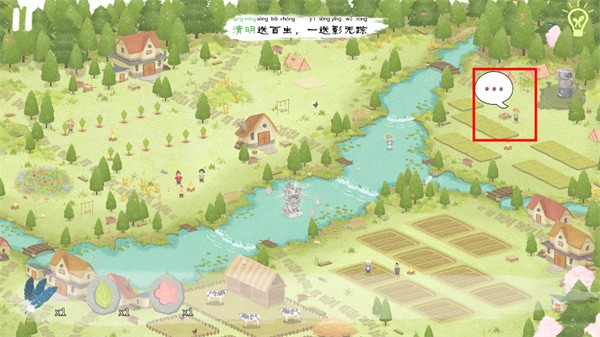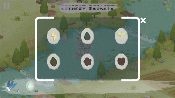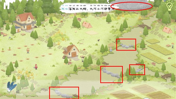 当全部河流都被灌满后,河边的老婆婆兴奋地跳进了河里,点击婆婆旁边可获得“水滴石板”,大雨下,田地上方也可获得嫩芽石板。