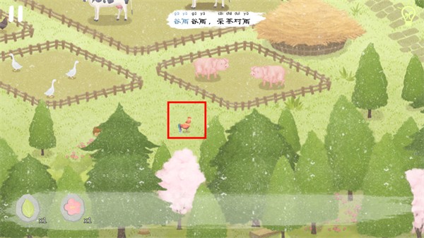 接着我们来帮助左上的农民伯伯种树,在场景的三个地点会发现小树苗(见下图)。获得“树苗”后,拖动到农民伯伯身边的3个红框下种起来。