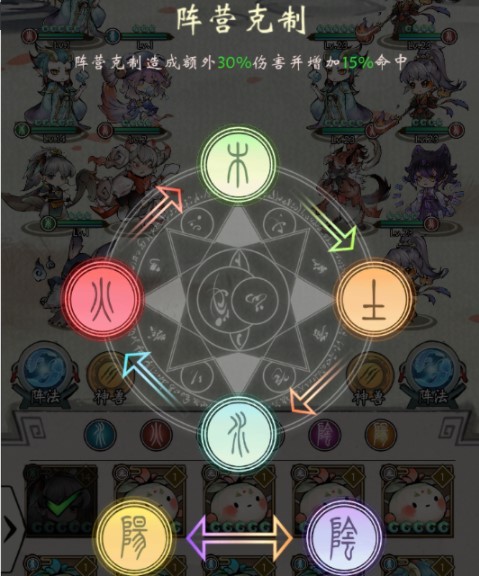 同属性的圣灵划分为同阵营,以此触发阵法加持效果,而不同阵营的圣灵又会产生阵营克制,造成额外的命中与伤害。