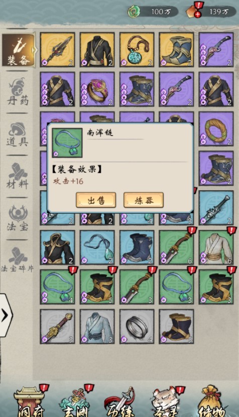 除了直接获取的方式外,道友还可以通过炼器阁炼制更高级的装备。