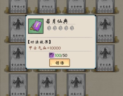5、通关灵溪洞5后解锁藏经阁与功法,可以前往宗门、藏经阁使用功法令抽取功法。