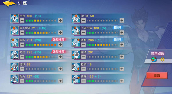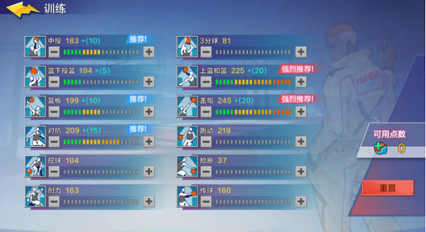 除了关键的进攻方面,身体对抗和抢断、盖帽属性也应提升到一个较高的数值。这是因为在1V1模式中一切只能靠自己,强壮的身体能在攻防两端构成威胁,是十分重要的。