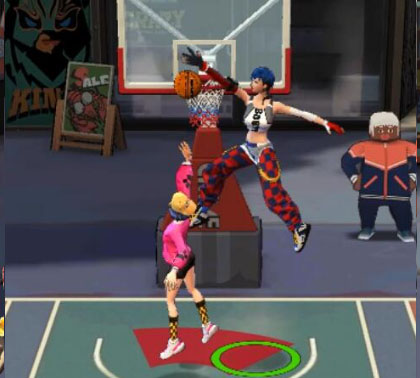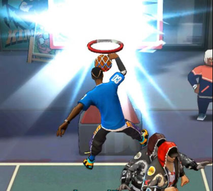 中锋和大前锋在面对身材比自己矮小的球员时,应该不厌其烦地进行背打。首先背对着防守者,一变按住“背打键”一边朝篮框方向挪动摇杆,在对手吃晃后可以按“加速键”,一边朝另一方向冲刺,飞身进行暴扣。在面对身材和自己一般高大的球员时,考验高手操作水平的时候也就到来了,玩家就可以使出“梦幻舞步”等技巧型技能戏耍对手,靠近篮下再轻松檫板,命中投篮。
