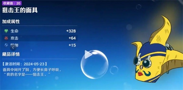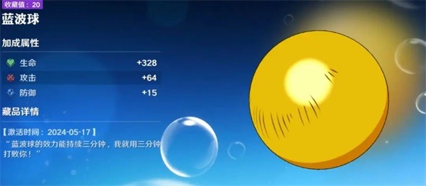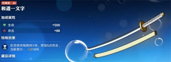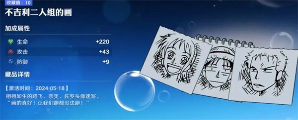 该藏品出现在主线剧情中,将原作的搞笑情节结合到了游戏剧情藏品里,并且藏品可以提高“生命”,“攻击”,“防御”。获取方式为主线剧情13-1,在进入关卡后直接往左走,左边桌子上可以捡到