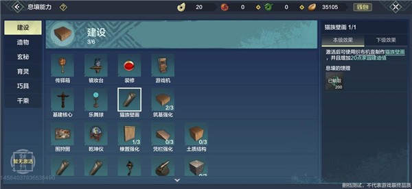 首先面前有六大分支,分别为建设、造物、玄秘、育灵、巧具、千乘,每条分支对应一条玩法,可谓是极大的丰富了生活玩家的可玩性。