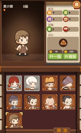《爆炒江湖》里的厨师技能丰富,不仅会采集食材、烧菜,在烧菜时还可以和你唠唠嗑,让你在干游戏时不会孤单,提高厨师的技能,就需要给厨师升级和进化,厨师进化到二阶时会获得一个技能,厨师进化到三阶时可以装备一个厨具,这样厨师的做法技法提高,客户的满意度也会提升。