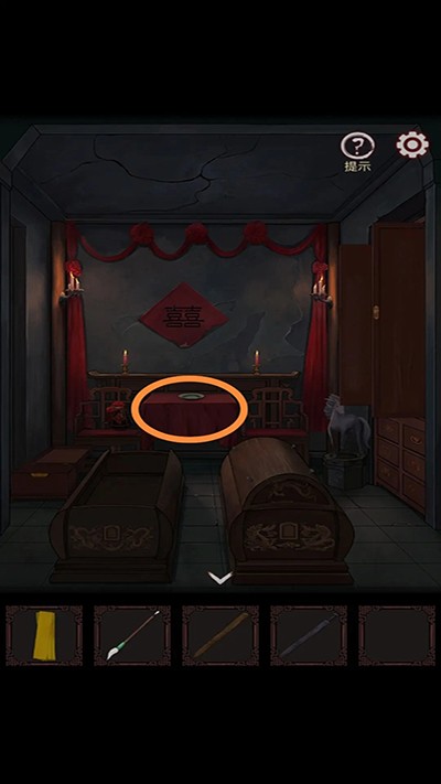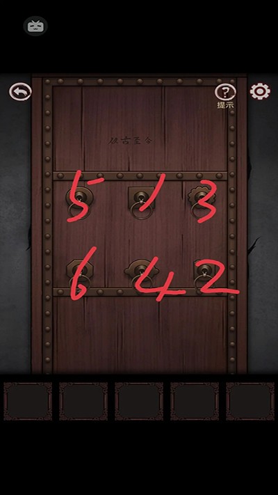 2、一直往里走到墓室婚礼,右边墙上有六个抽屉,点击一个,下一个就会打开,记下顺序,因为第二个固定,所以以此为基准;