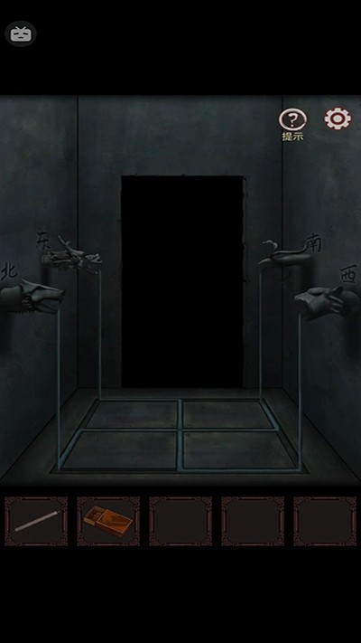 9、进左墓室,用火柴点蜡烛,墙上出现线索,下面四个钟按线索转动,打开头顶的盖子,马上就能出去了;