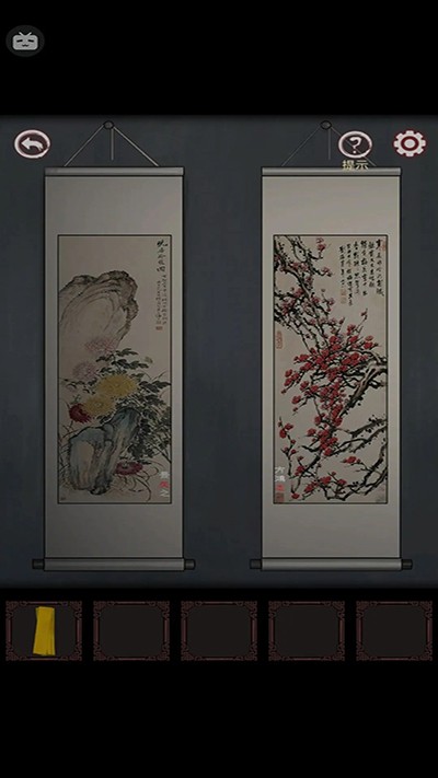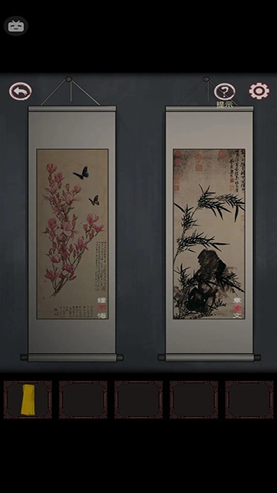回右墓室,墙上挂着三缺一张画、正好手上有一张画,挂上去;