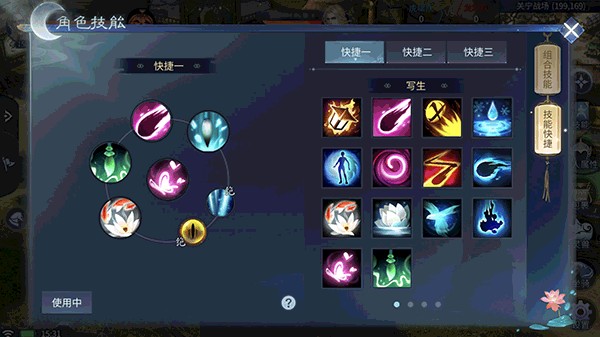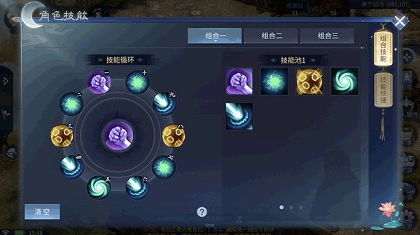 玩家可自行设置各类技能,在一个组合池中,组合技能将只占用一个技能快捷栏,玩家可连续按该组合技能,则会依次释放该组合中的每一个技能(若处于冷却中将自动跳到下一个技能)。