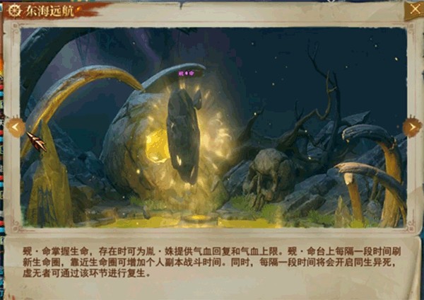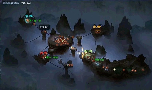 副本内分为5个平台,中间大平台是BOSS,四周分别链接生命、时间、力量、灵魂,这4个平台有各自的任务。