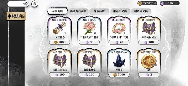 我们收集的资源,需要用在我们所要升级的角色上时,就需要给他们配置装备升级技能等。而当我们所获得的材料不够时,我们可以通过我们收集的晶钻、邀请函、金币、推荐信等换取资源。(不同的道具有不同的作用,长按会给予提示,根据自身要求选择)