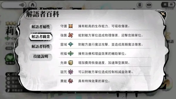 祝福:战斗中特别重要的角色,大多拥有着回血或者减伤增益的效果,这些增益很大的保障了输出角色的生存能力,可以大大增加对局的容错能力。