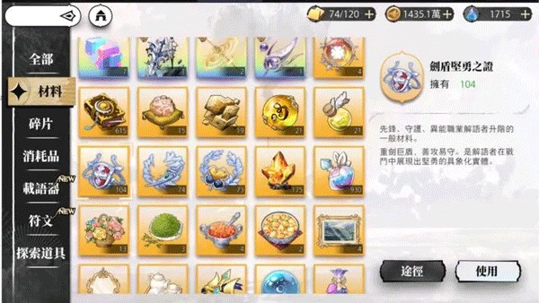 ②启程中主要是获得金币、升级材料及升阶材料,金币可用于商店购买所需物资,而其他用于角色等级提升。
