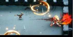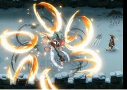普通攻击:分为挥砍一下和旋风斩两种,近身无预警直接挥砍,距离拉远则会出现红圈提示,高难度每三次攻击附加一次六道飞刃弹幕