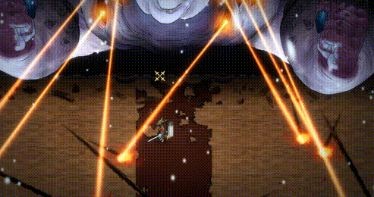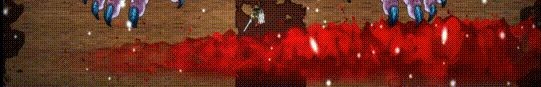 愤怒模式:当boss血量低于一定量(随难度变化),武器头发发出金色,身体出现血液升腾,攻击力有所提升。之后大吼一声将玩家震退至板边,之后会出现贯穿全屏的横向飞刃弹幕,穿过弹幕靠近boss,boss解除飞刃弹幕。