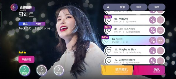 这里推荐的音乐适用所有乐器,基本难度选择都在2~9颗星左右(喜欢高难度,当我没说)。