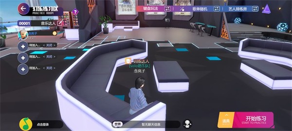 幻乐练习区大厅中的沙发点击即可坐下,然后是青鸟演出中心的长板凳以及饮料机和沙滩上的太阳椅都可进行互动。