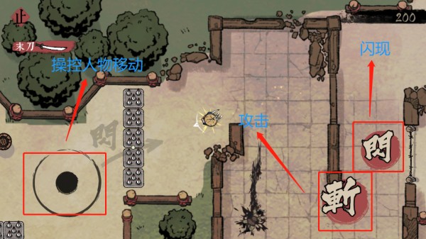 2、其次我们需要知道在操作界面我们的技能基本是什么,玩家的技能分为且也只有三个基础技能,技能除了最为基础的移动,大家还能向敌人进行挥刀,也可以利用冲刺来发动进攻,所以相对来说上手是比较简单的,虽然技能简单,但是我们面对不同的敌人能够使用的兵器是多种多样的,比如叶刀、飞刀、投雷和飞镖等,能够大大提高我们打兵的速度和效率。