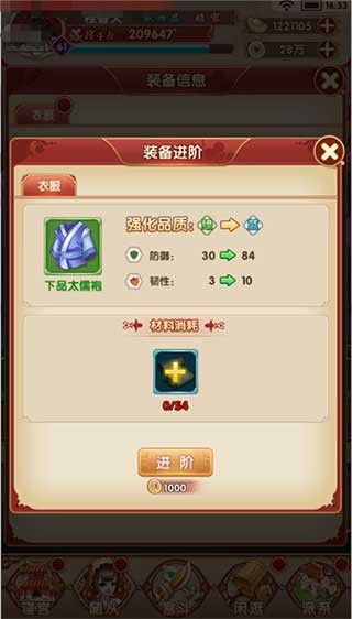 1.普通装备均能通过消耗进阶材料以及金币进阶为高品质的装备。