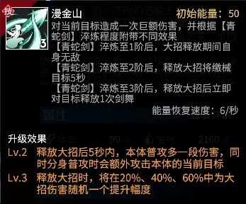 小青发起的普攻、技能及分身每淬炼12次青蛇剑,可将青蛇剑淬炼等级提升至下一阶段,青蛇剑进阶后将获得新的效果,因此小青的攻击速度是比较重要的属性。