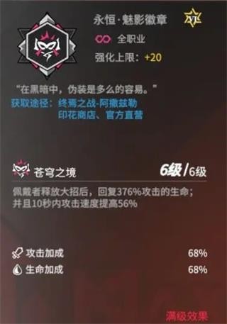 徽章方面,永恒·魅影徽章释放技能后增加高额攻速的属性是小青比较需要的。