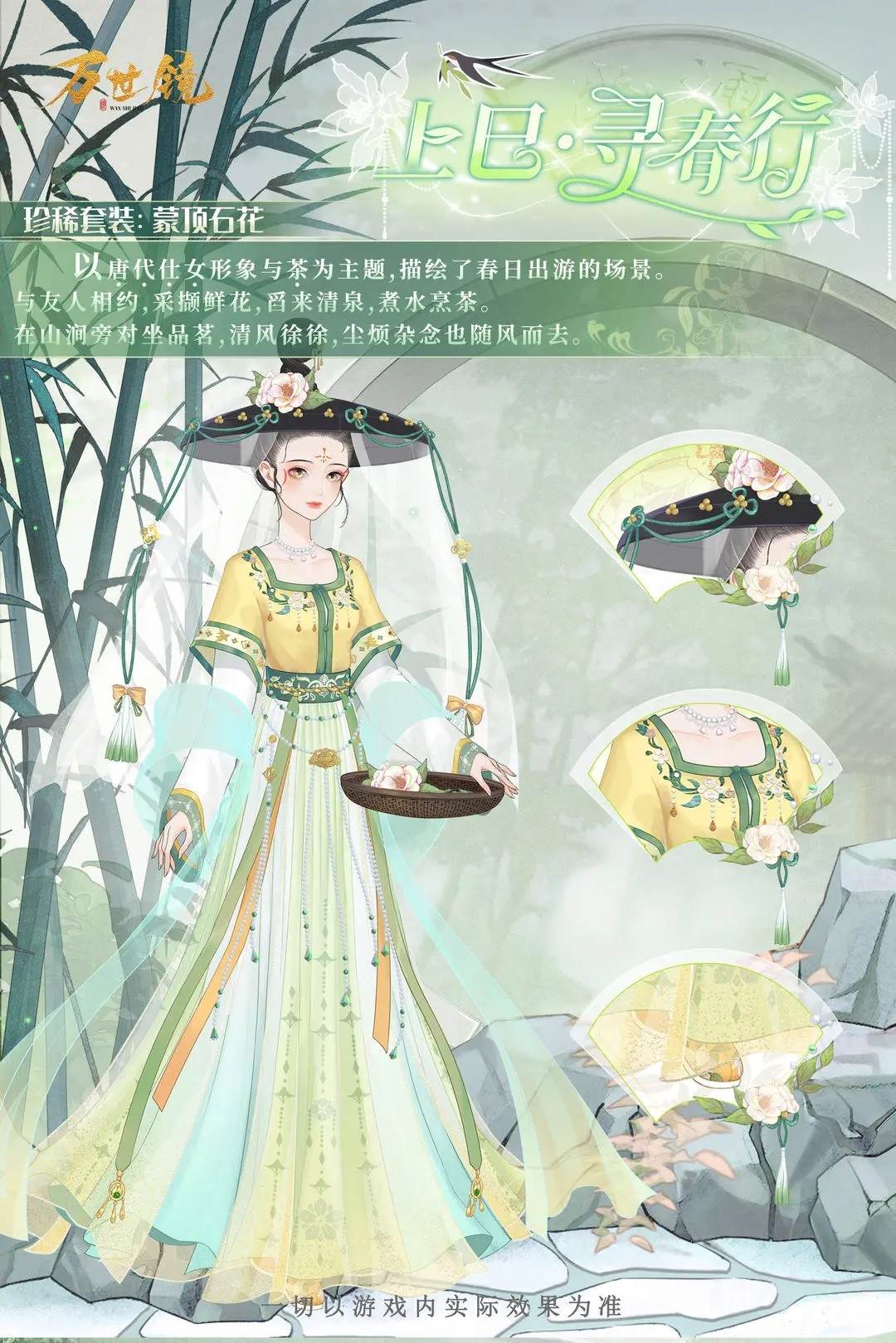 箬叶般青绿沁人的薄衫,头戴与腰间的淡黄菖蒲,