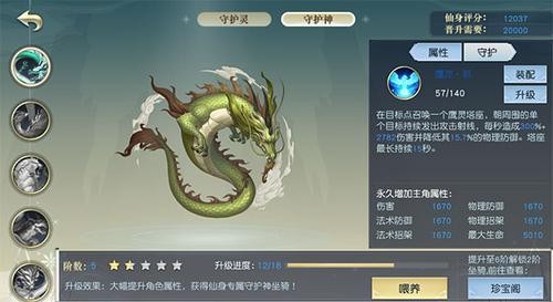 目前阶段,仅开启的为青龙守护神,相传五神兽降临之际,身边伴随无数守护之灵,在塑造金身的时候,进阶守护之神,解锁守护之灵,不仅可以提升仙位评分还可以增强装备槽位属性。