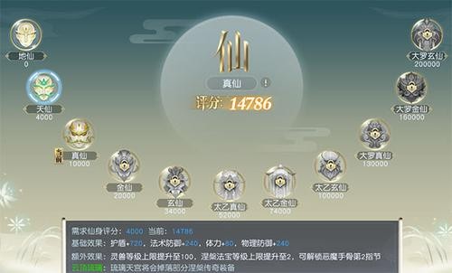 以仙为例,当前玩家阶段基本步入了天仙,除了解锁相对应的仙位称号之外,还提升人物属性,护盾,法防,体力,物防,同时解锁相应的仙位,还会有额外效果,比如天仙,灵兽等级提升至100,涅磐法宝等级上限提升至2,解锁恶魔手骨第2指节,云顶琉璃(琉璃天宫掉部分涅磐传奇装备,碎片等。