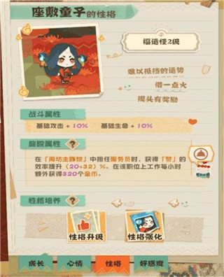 升级式神的性格需要足够的赞才可以进行升级,其中这些赞玩家可以通过将式神放入酒居屋来获得,需要一定的时间。