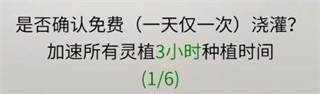 2、浇灌:每日共有6次浇灌的机会,每次浇灌所有灵植可以加速3消失。