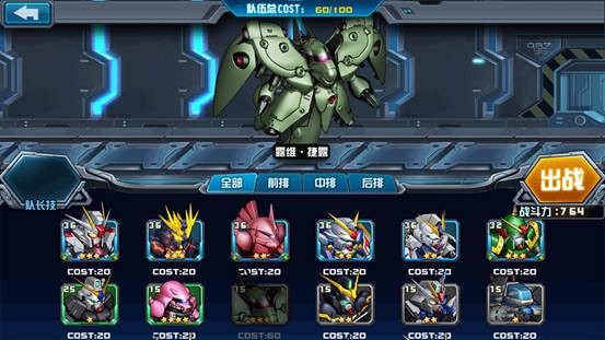 当上阵5台20cost值的机体时,阵容灵活多变,可根据敌方的阵容做出相应的改变,更能做到克敌制胜。