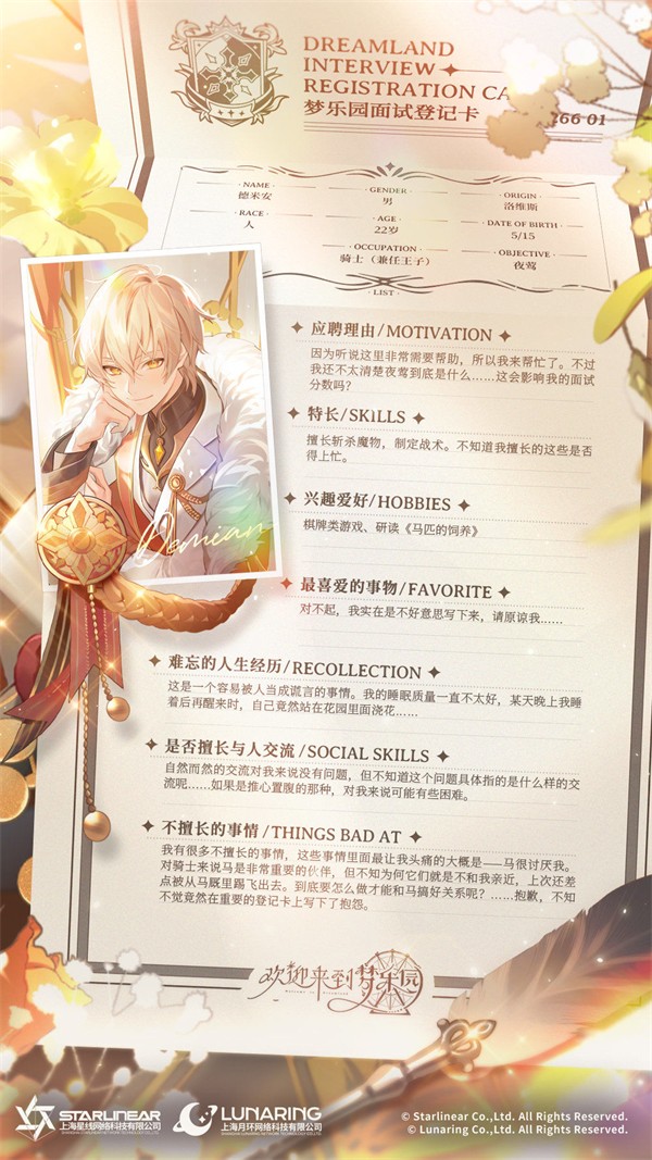 欢迎来到梦乐园是一款以女性向为核心的轻喜剧异世界冒险游戏,融合了卡牌养成、模拟经营与策略战斗的多元玩法。玩家将化身乐园管理者,穿梭于奇幻大陆的多个国家,追寻失窃的真理之书残页,重建荒废的梦乐园。欢迎来到梦乐园以轻松幽默的剧情为核心,搭配性格各异的可攻略角色,玩家可以通过主线任务、支线副本和互动剧情解锁角色专属故事,体验不一样的冒险旅程。
