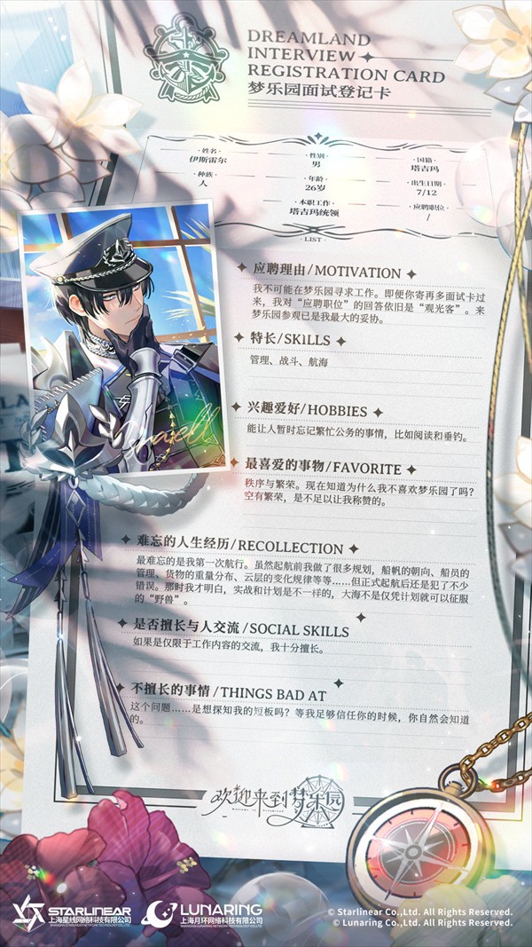 作为一名雷厉风行的执行者,伊斯雷尔其人不苟言笑,曾经是海上令人闻风丧胆的海军统领,但因为平日太过于严厉,性格也过于刻板强硬,所以没有朋友。